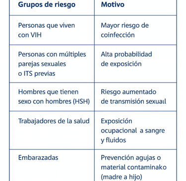 🔁 Si no estás vacunado y tienes factores de riesgo (por ejemplo, múltiples parejas sexuales o uso de drogas inyectables), repítela cada año o según indicación médica.
